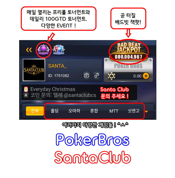 저희 포커브로스 산타클럽 SantaClub 코드와