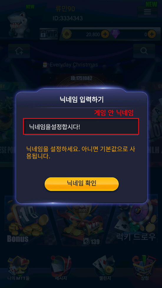 그 다음엔 APP 게임 안에서 사용하실 닉네임을 설정해주시면 됩니다.