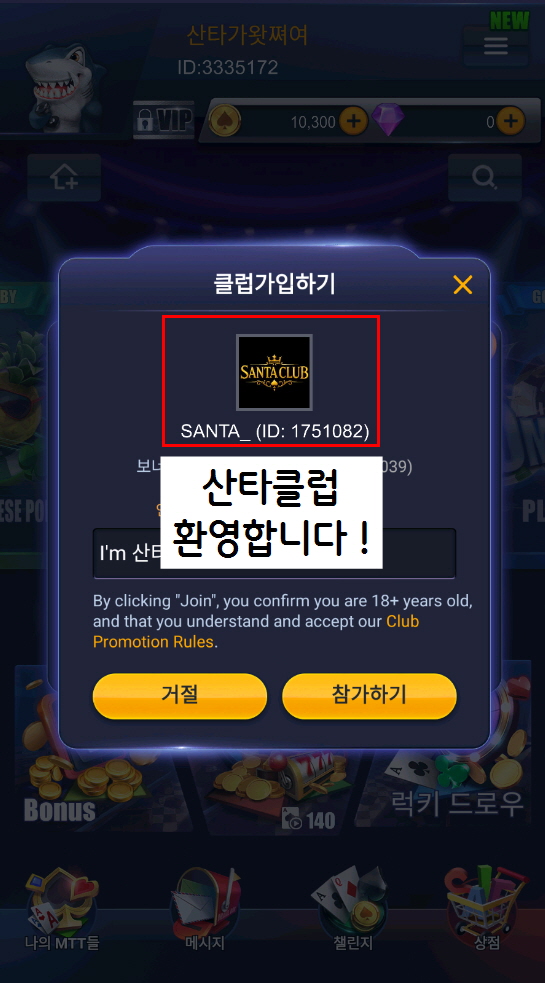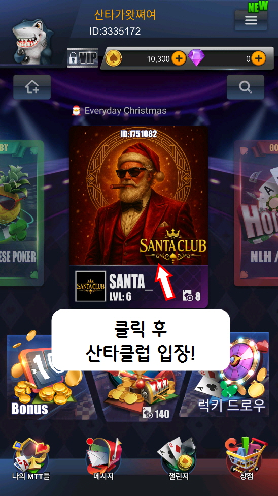 혜택 3. 저희 산타클럽 보너스 코드로 들어오셔서 링게임을 즐기실 경우