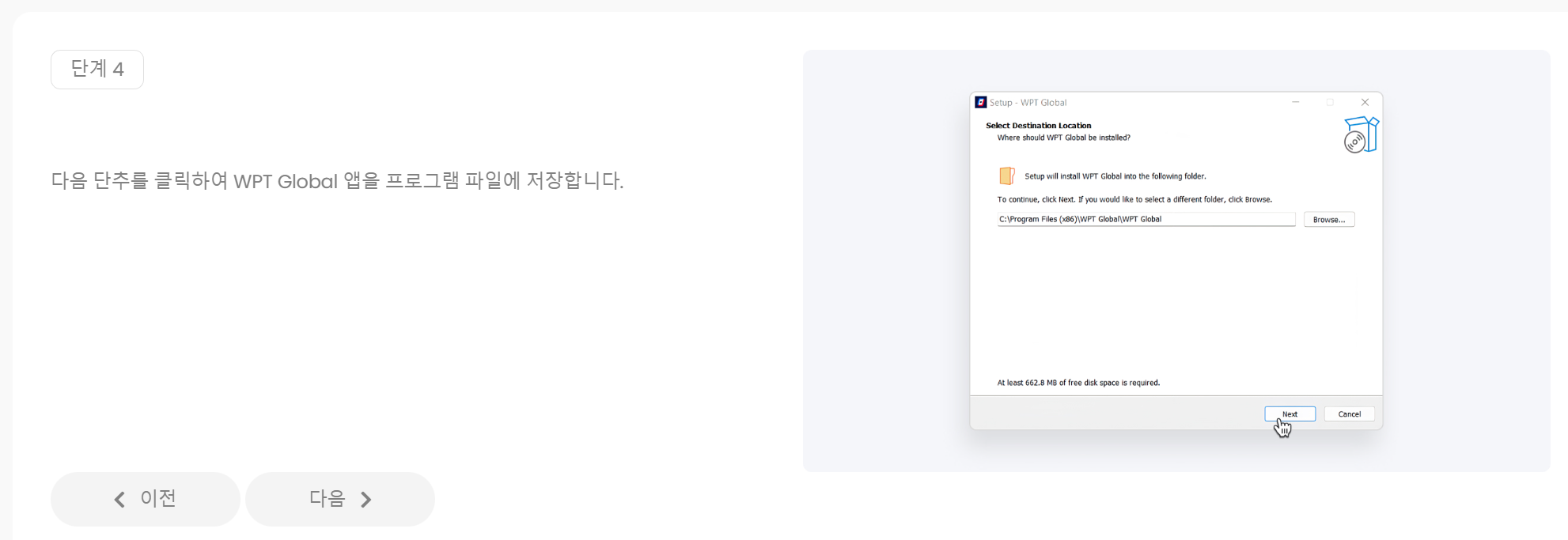 다음 단추를 클릭하고 WPT Global 앱을 설치합니다.